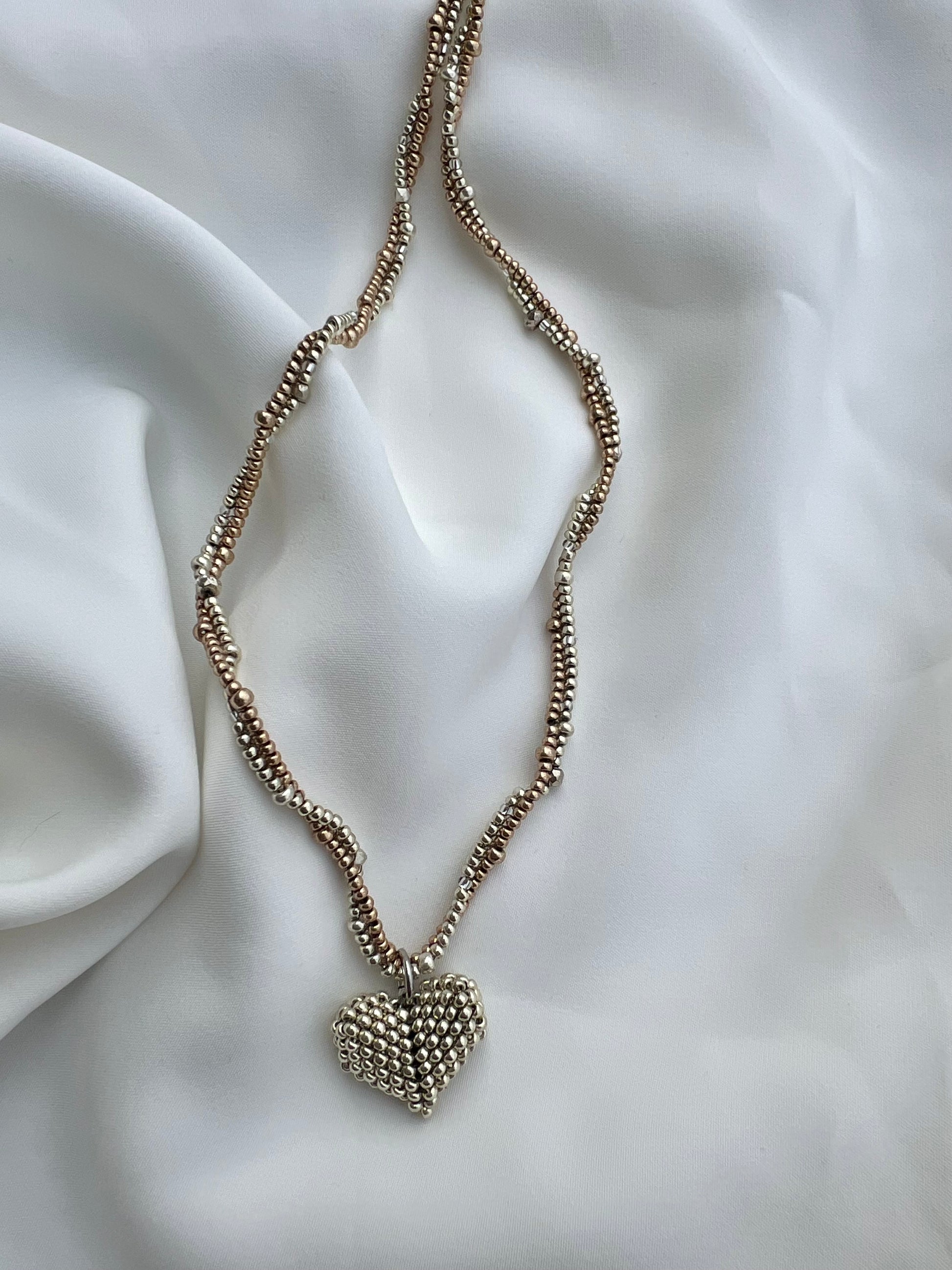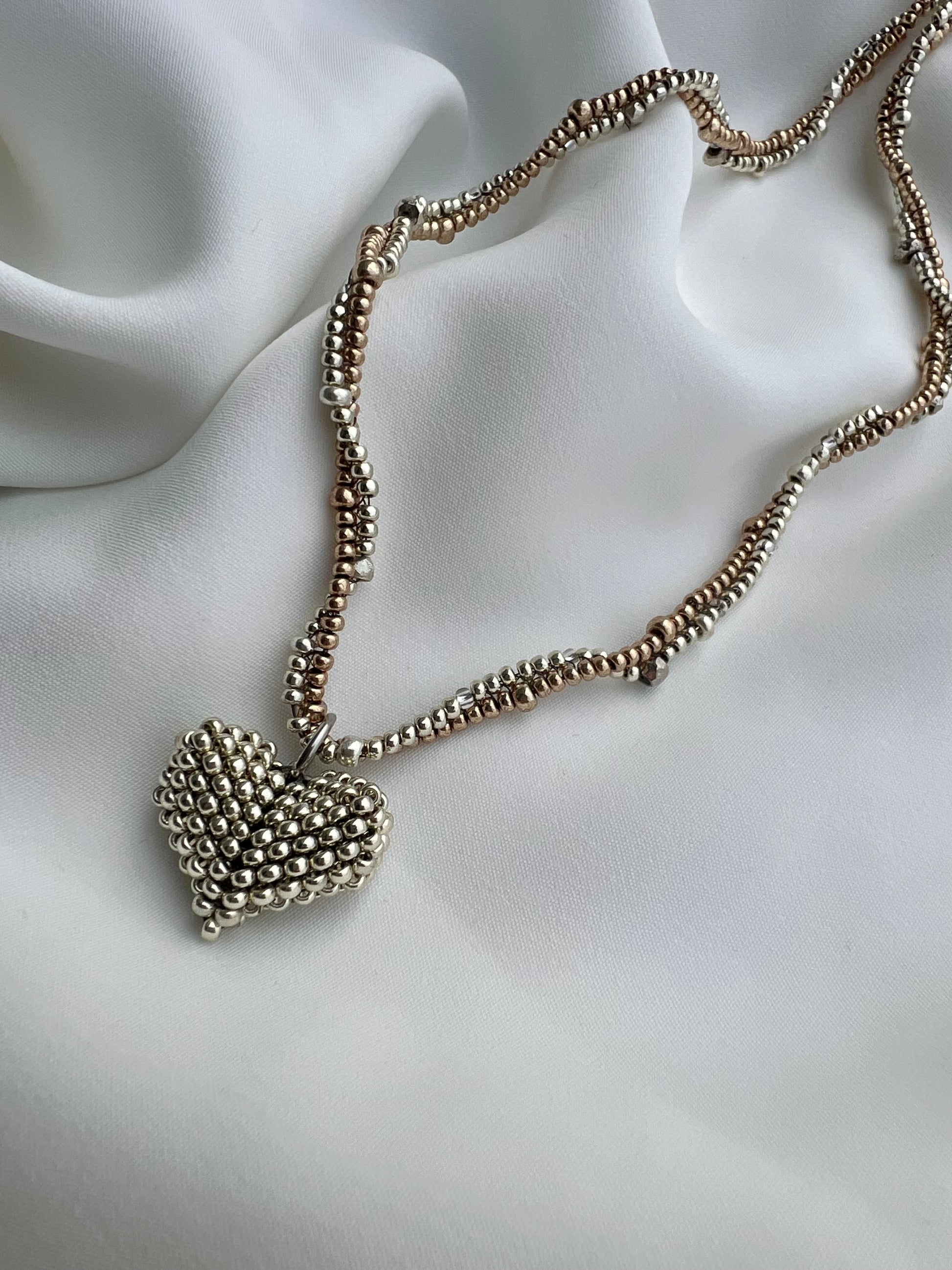 The Heart Collection explores this icon through hand-beaded shapes, sculptural 3D hearts, rope-like strands, and chain-inspired forms. Some pieces are bright and joyful, others soft and reflective - mirroring the many ways we experience love.